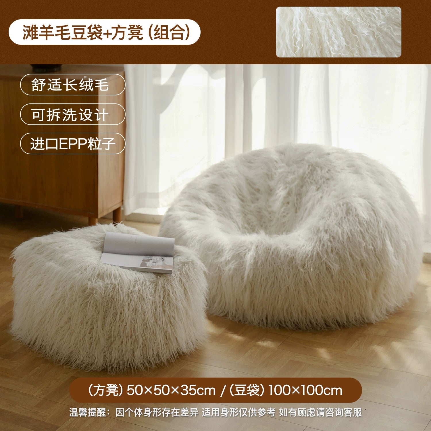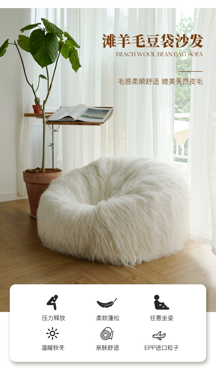 MRLAZY beach wool bean bag wrap lazy sofa comfortable plush small sofa bedroom lounge chair lamb wool lazy chair