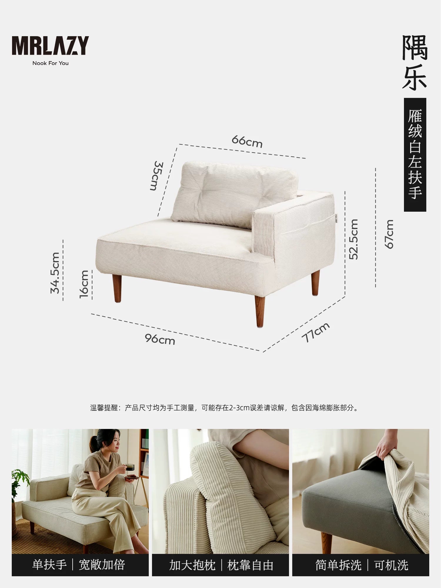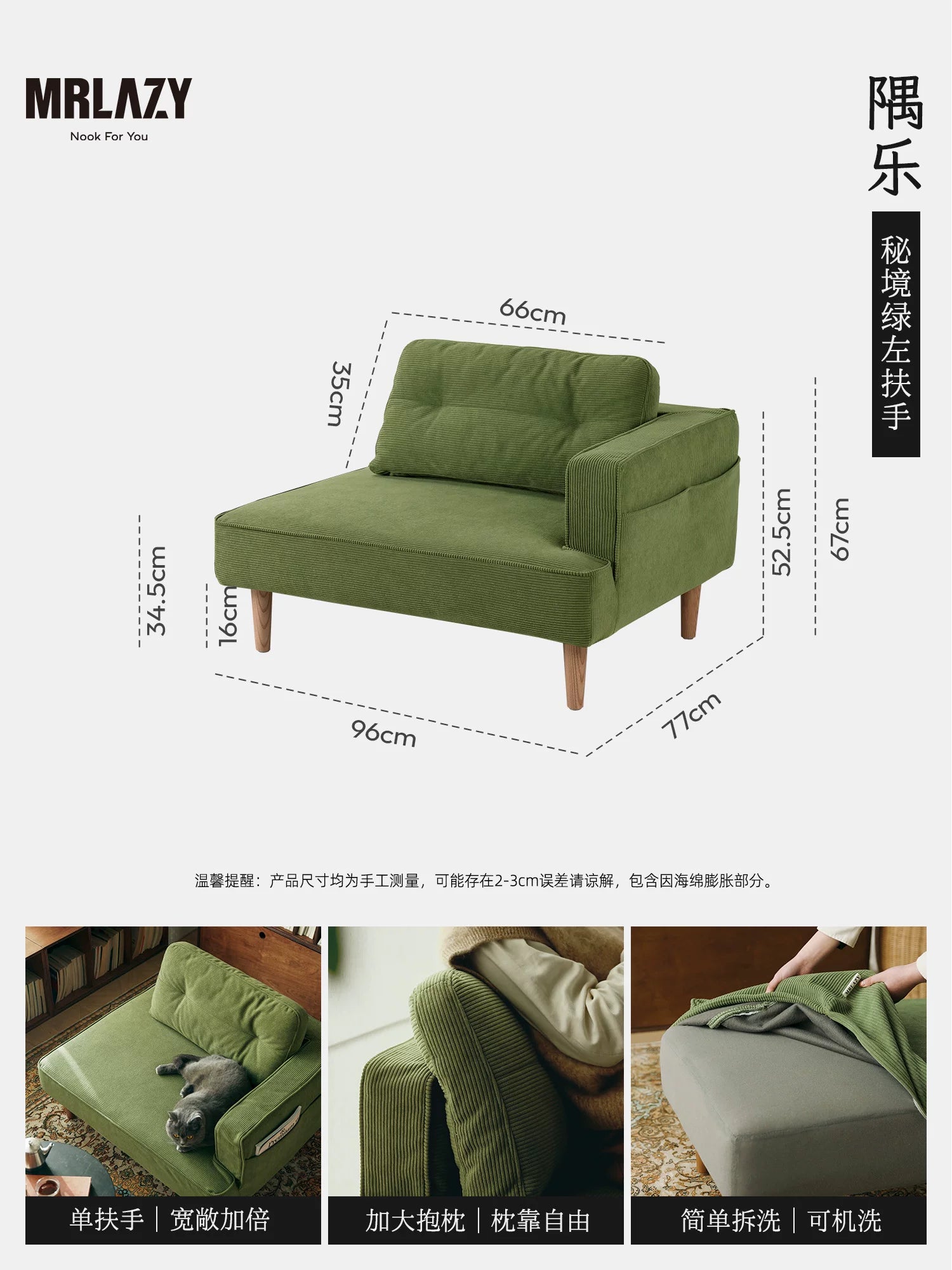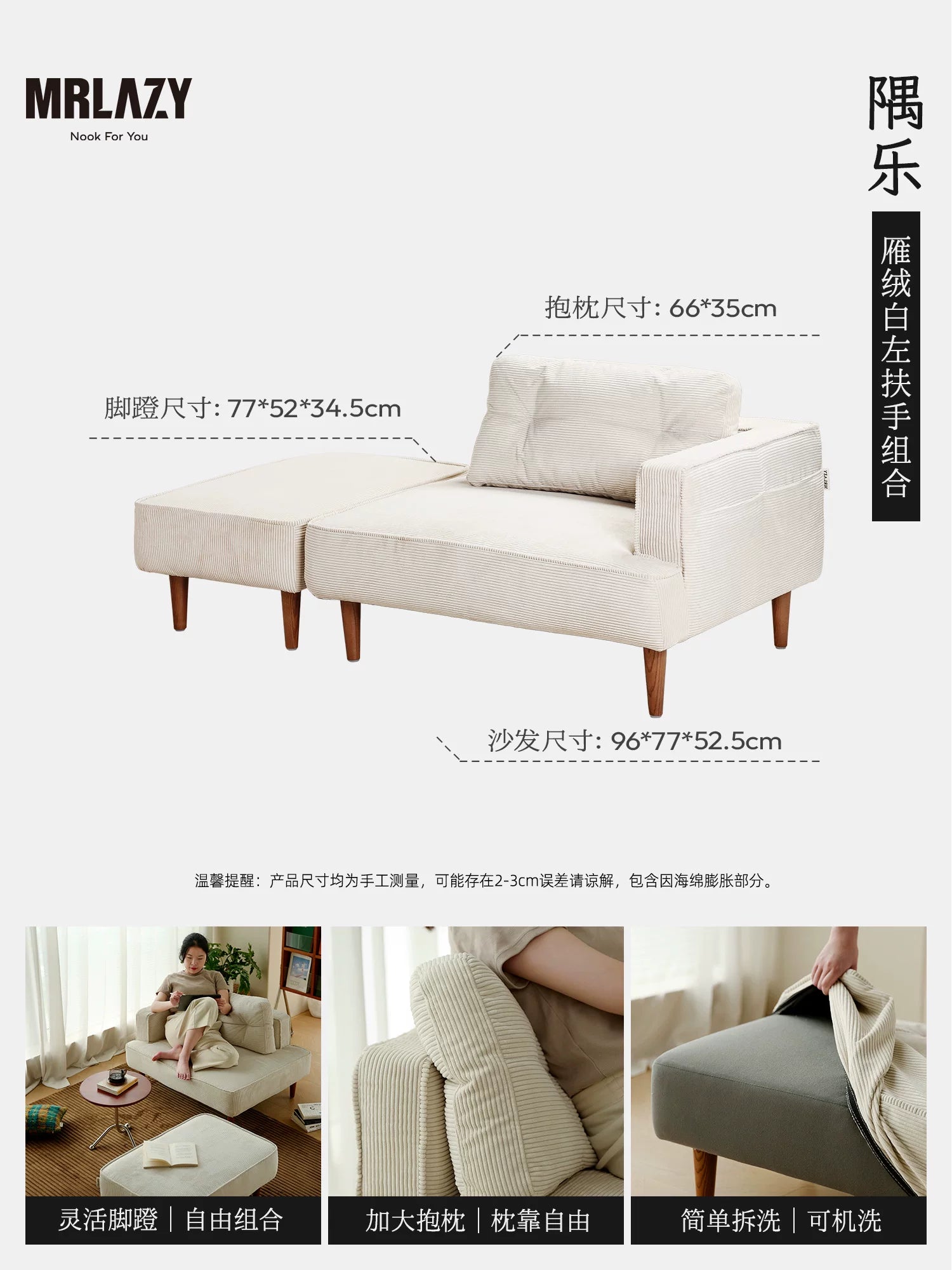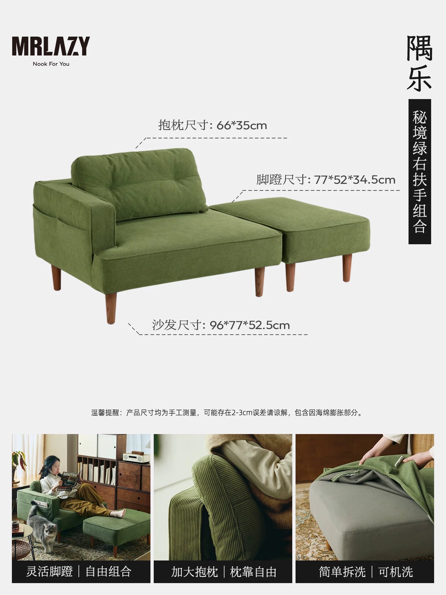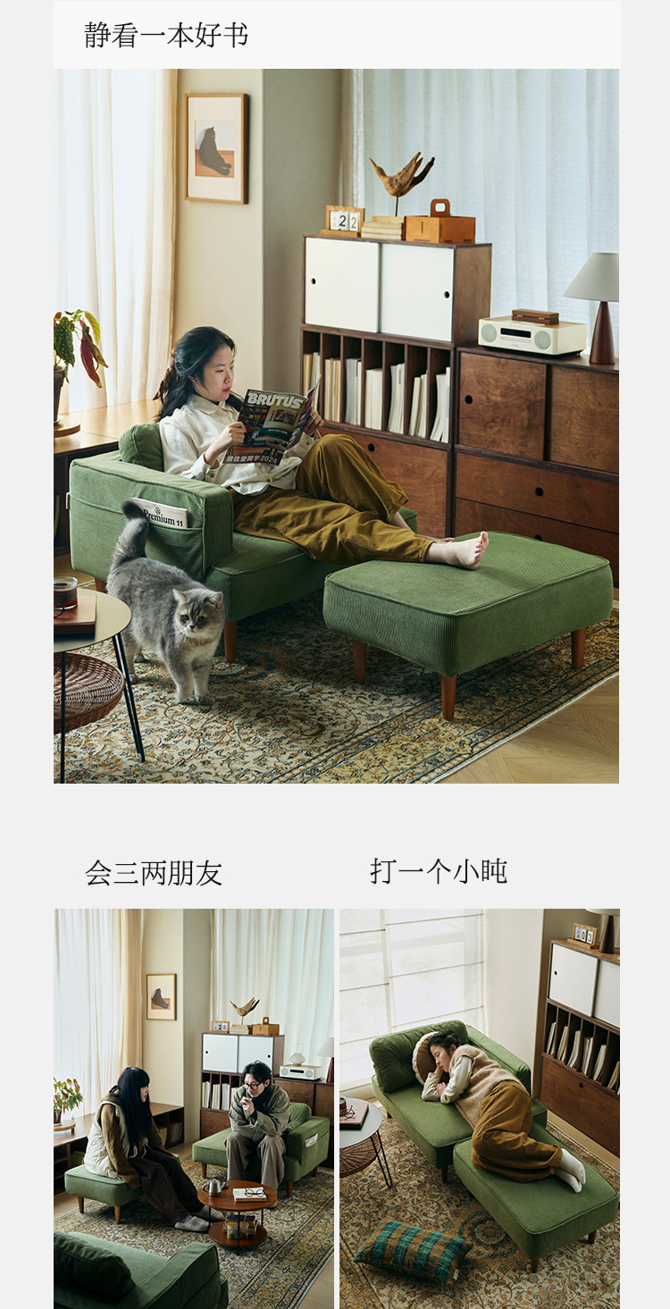 MRLAZY fabric sofa small apartment removable and washable reading study apartment living room bedroom corner retro sofa